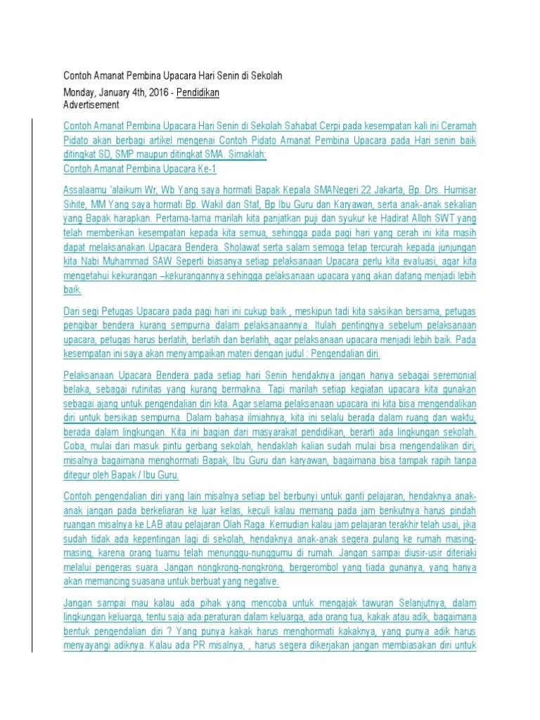 Contoh Amanat Pembina Upacara Hari Senin - Amanat Pembina Upacara Peringatan Hut Ri Ke 75 Di Smp Laboratorium Um Smp Laboratorium / contoh amanat pembina upacara hari senin di sekolah.
